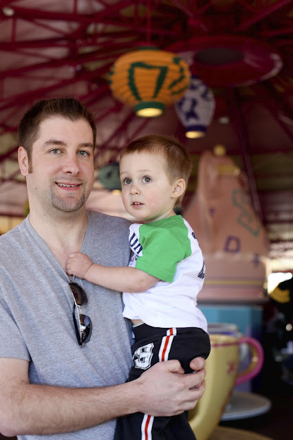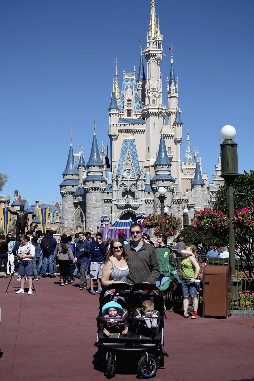 So after two poopie diapers, two outfit changes, to complete meltdowns, and paying the bill we made our way to the monorail. It was finally time to get into the Magic Kingdom. Once we got in I realized that I had forgotten to buy tickets to get in the park, so there we waited in between security the main entrance for an hour and 15 minutes while my saint husband went and bought our tickets. (Oops! My bad!) After that was taken care of things were great. We had lunch, we walked around, we saw Cinderella’s castle. It was Eric’s first time to Disney World. Soon after Peyton got to go on his very first ride; The teacups. It was so cool to see. He really did have a great time.