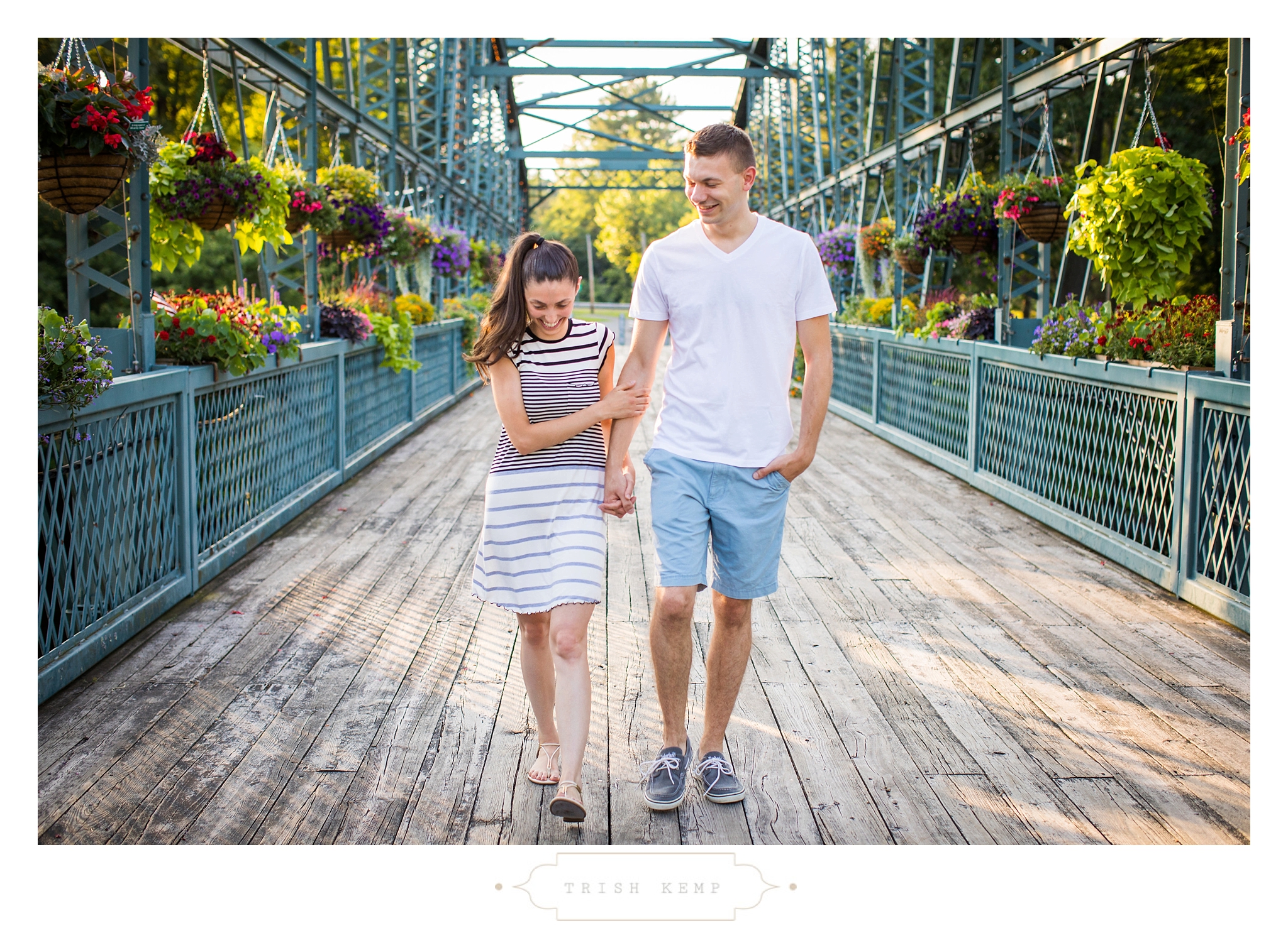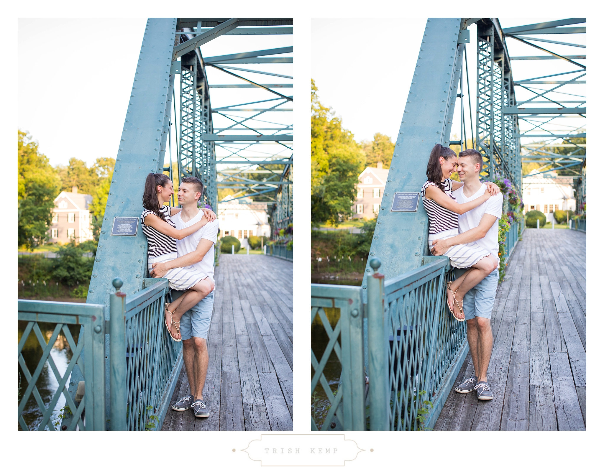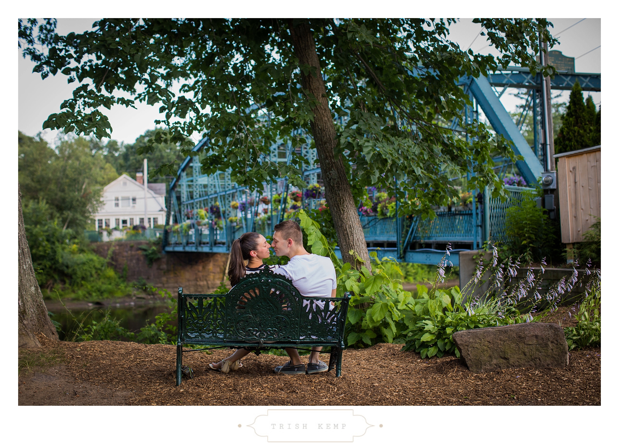 When Elyse + Eric decided on the Simsbury Bridge for the Spark Session I was excited! It was where Erik had proposed to his beautiful bride to be, and I couldn’t think of a better place with more meaning to them for their session. The bridge is always beautifully cared for, with draping plants, and colors that frame the bridge beautifully. Looking onto the water there were kayakers lightly drifting by, and a soft warm breeze that created the scene for a perfectly quaint summer evening in New England. As a couple these two are always laughing, cracking jokes, and its obvious to anyone who spends time with them that they belong together.