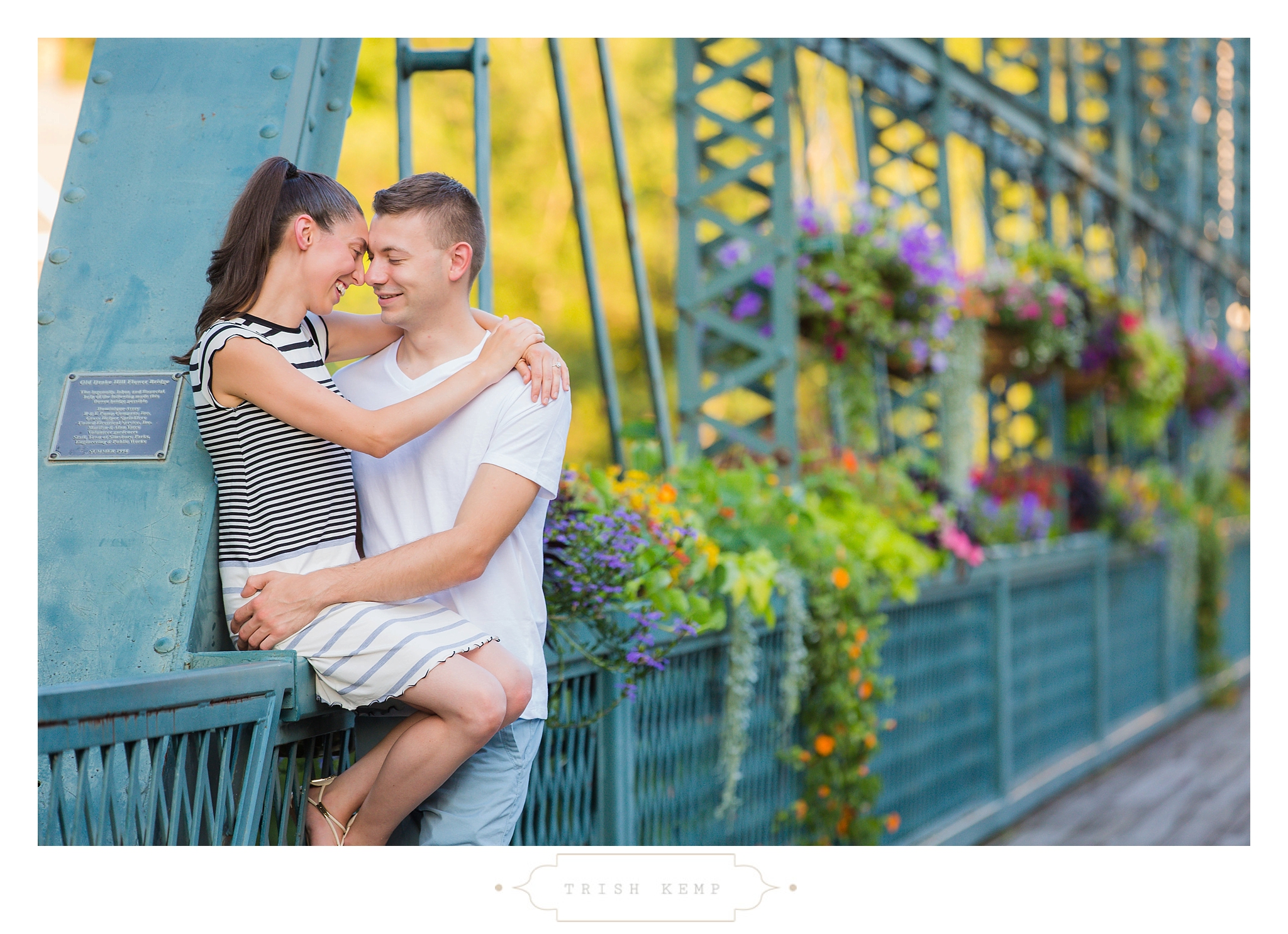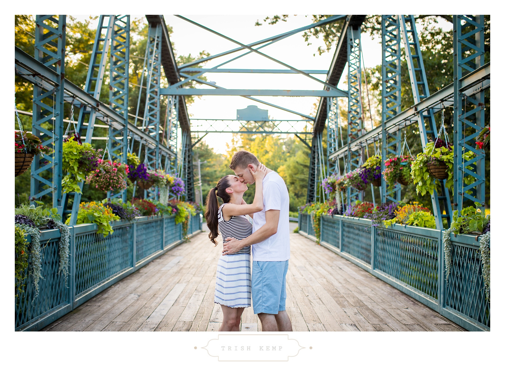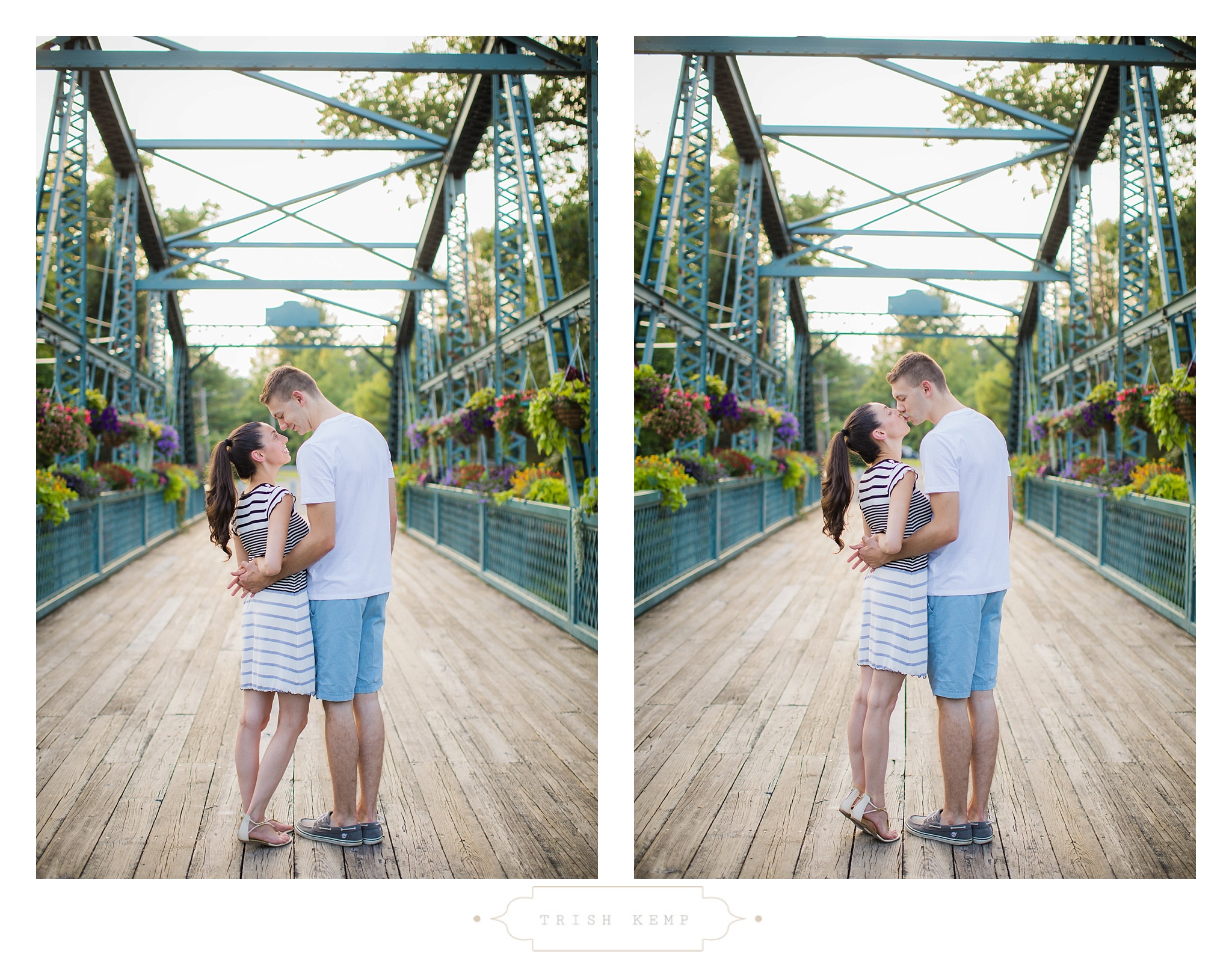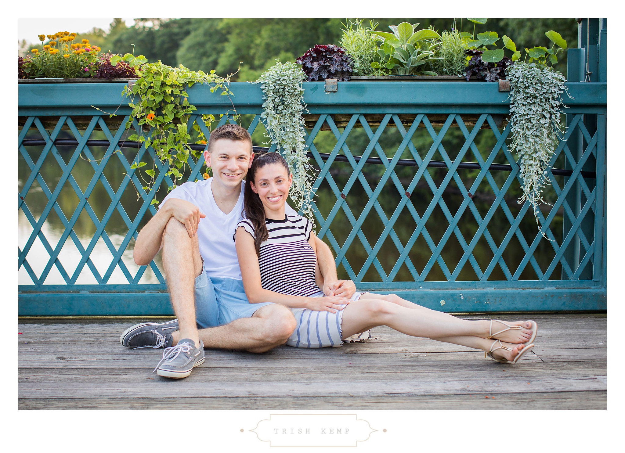 When Elyse + Eric decided on the Simsbury Bridge for the Spark Session I was excited! It was where Erik had proposed to his beautiful bride to be, and I couldn’t think of a better place with more meaning to them for their session. The bridge is always beautifully cared for, with draping plants, and colors that frame the bridge beautifully. Looking onto the water there were kayakers lightly drifting by, and a soft warm breeze that created the scene for a perfectly quaint summer evening in New England. As a couple these two are always laughing, cracking jokes, and its obvious to anyone who spends time with them that they belong together.