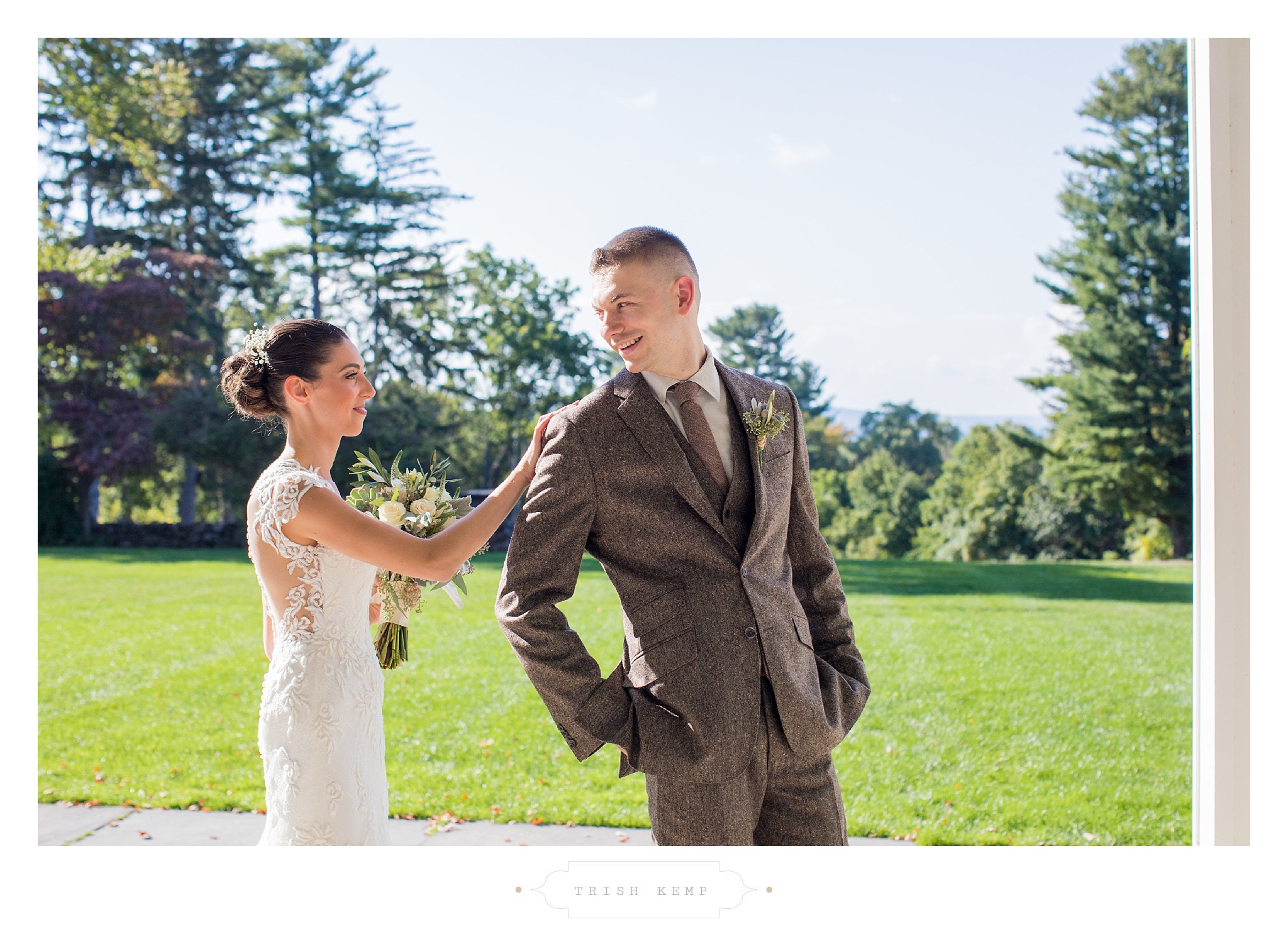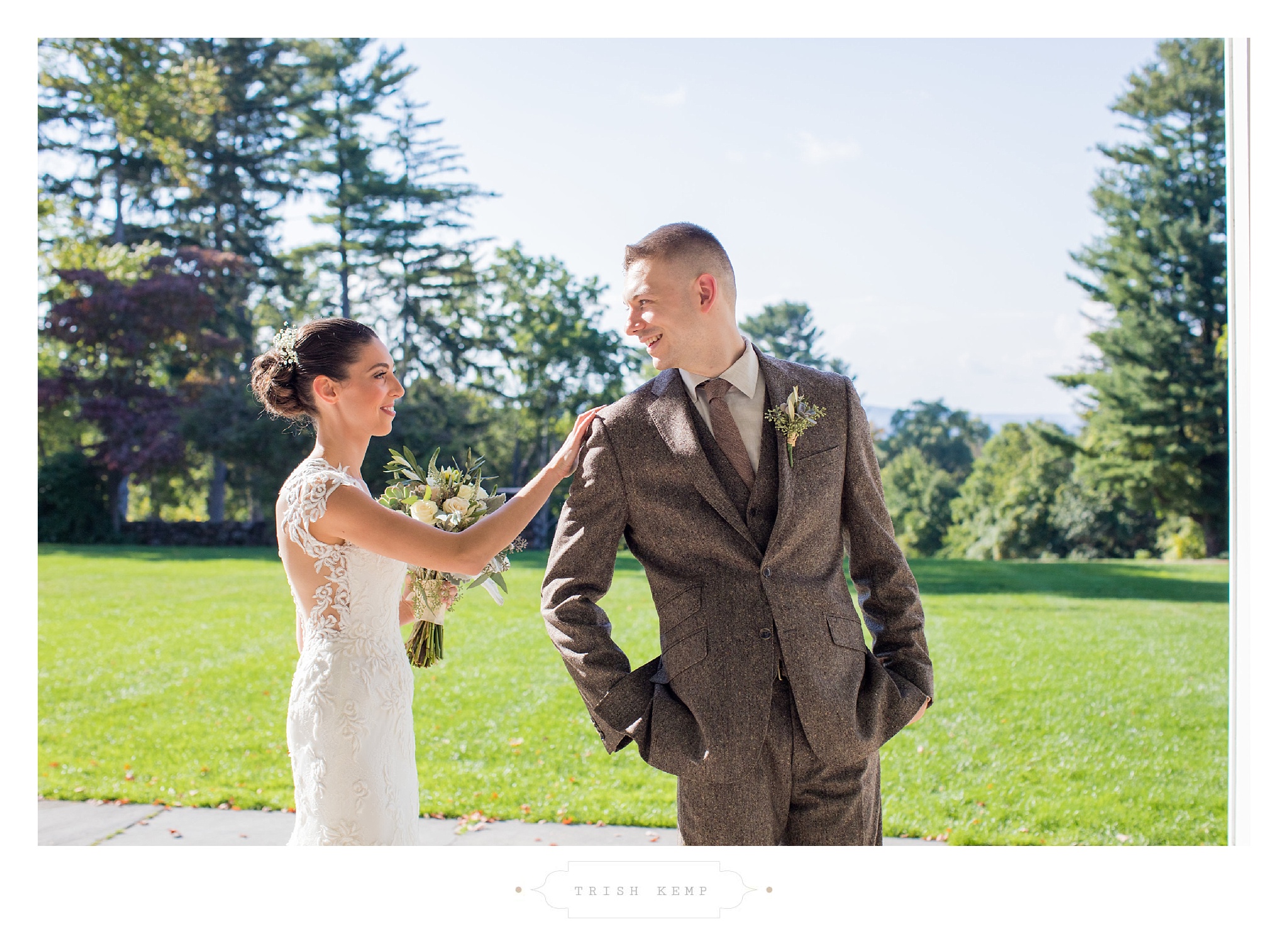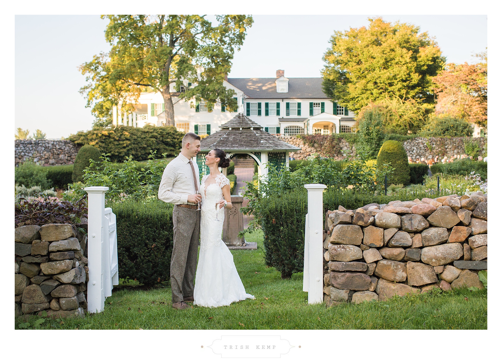 If you’ve ever been to the Hill-Stead, you know what an amazing location it is. The property boasts the most stunning early American architecture and grounds. Butting Miss Porter’s School, the estate has picturesque views, long stone walls, a manicured landscape, and sunken garden. It is a dream location for any couple, and for these two, it was a romantic dream. As a photographer, there isn’t a bad spot to take photos. Every angle is more beautiful than the last, and the mature trees around the property framed this timeless venue beautifully.