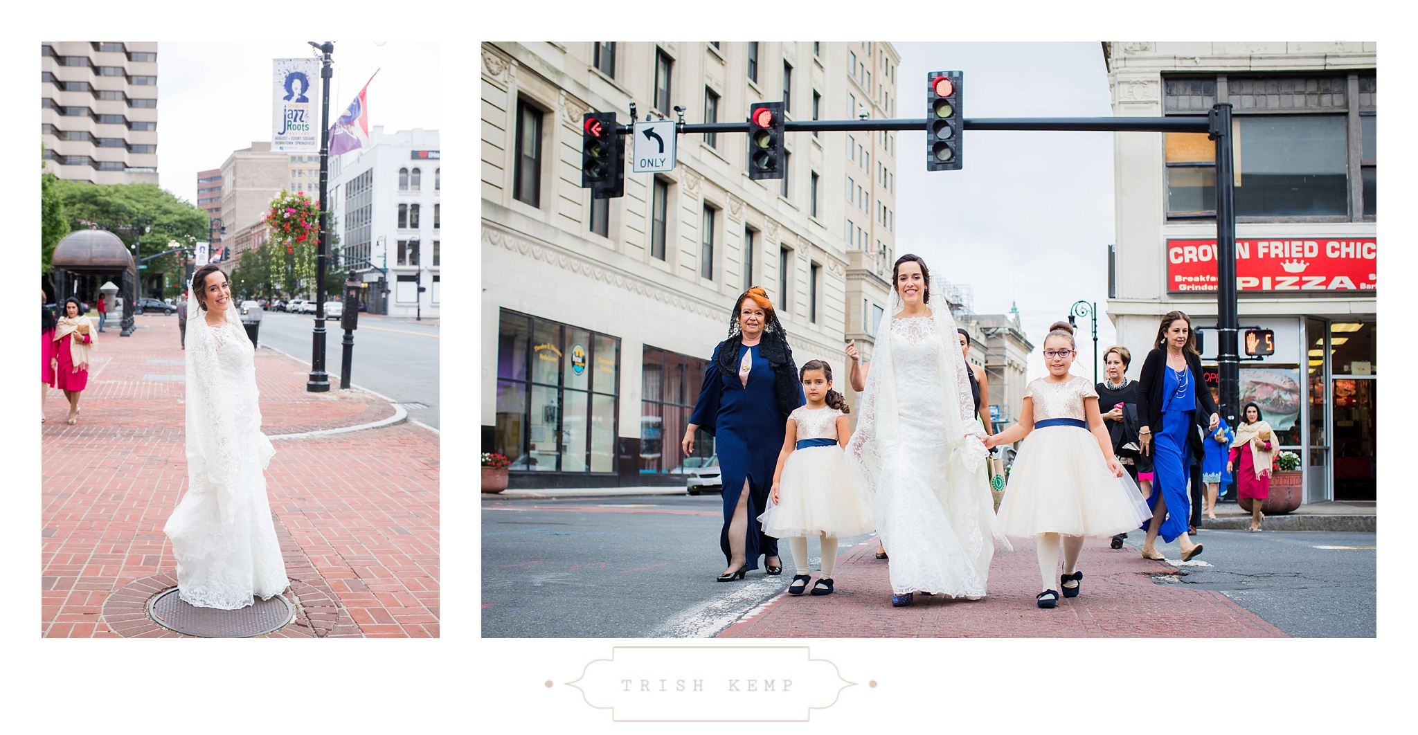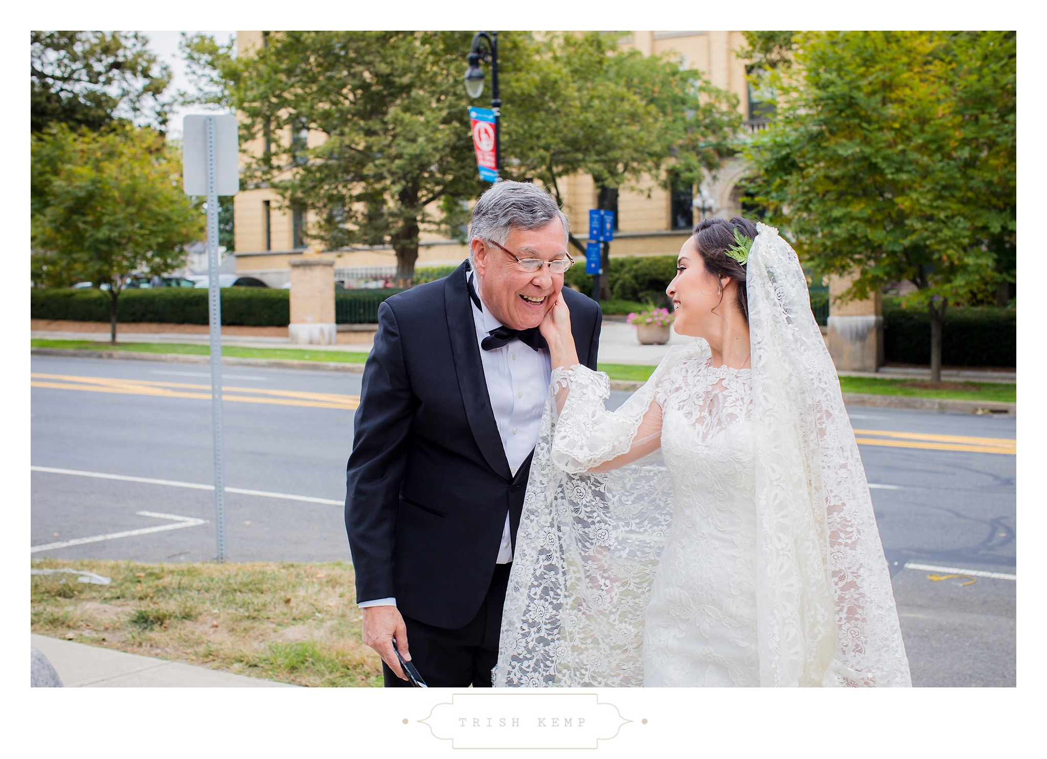 I walked with Git, her family, and her friends from the Sheraton Hotel downtown, to their church. It created a unique opportunity for some wonderfully candid images of Git downtown, and enjoying some laughs with her nieces. These two chose their family church, and exchanged vows at St. Michael’s Church in Springfield, Massachusetts. Religion is very important to them, and their ceremony reflected their connection through moving readings, and tears of joy shared by many in the church. Afterwards we made our way for some photos in front of the Springfield Library, and then headed into the Springfield Art Museum for a toast. As you can see, it created a beautiful and intimate environment for cocktail hour to take place before heading to their formal reception at the History Museum.