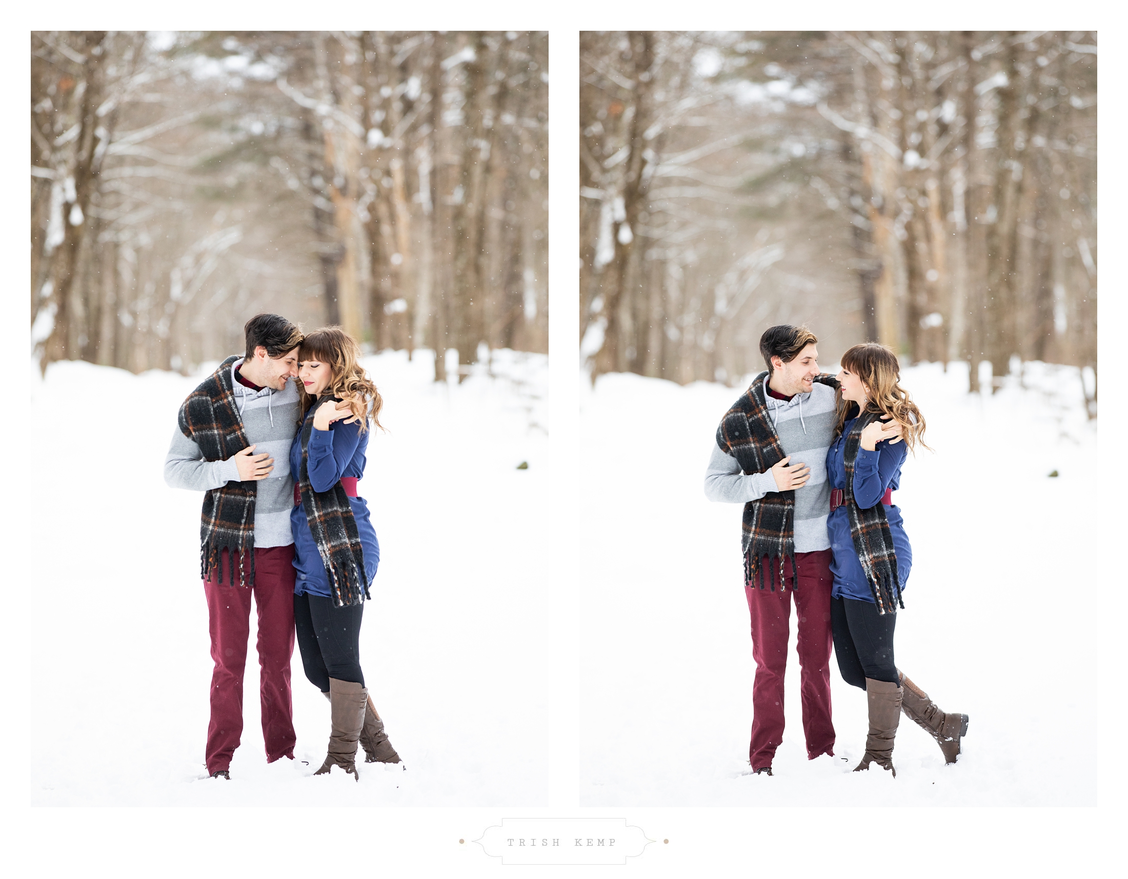 How lucky we were to have the most delicate snowfall on the day of Krystyna + Mike’s Spark Session. These two giggled like little kids the entire session, and snuggled away in the chilly winter air. We were FREEZING that day, but the light that decided to grace us with its appearance was absolute perfection! Check out my favorites from their fun snowy Spark Session!