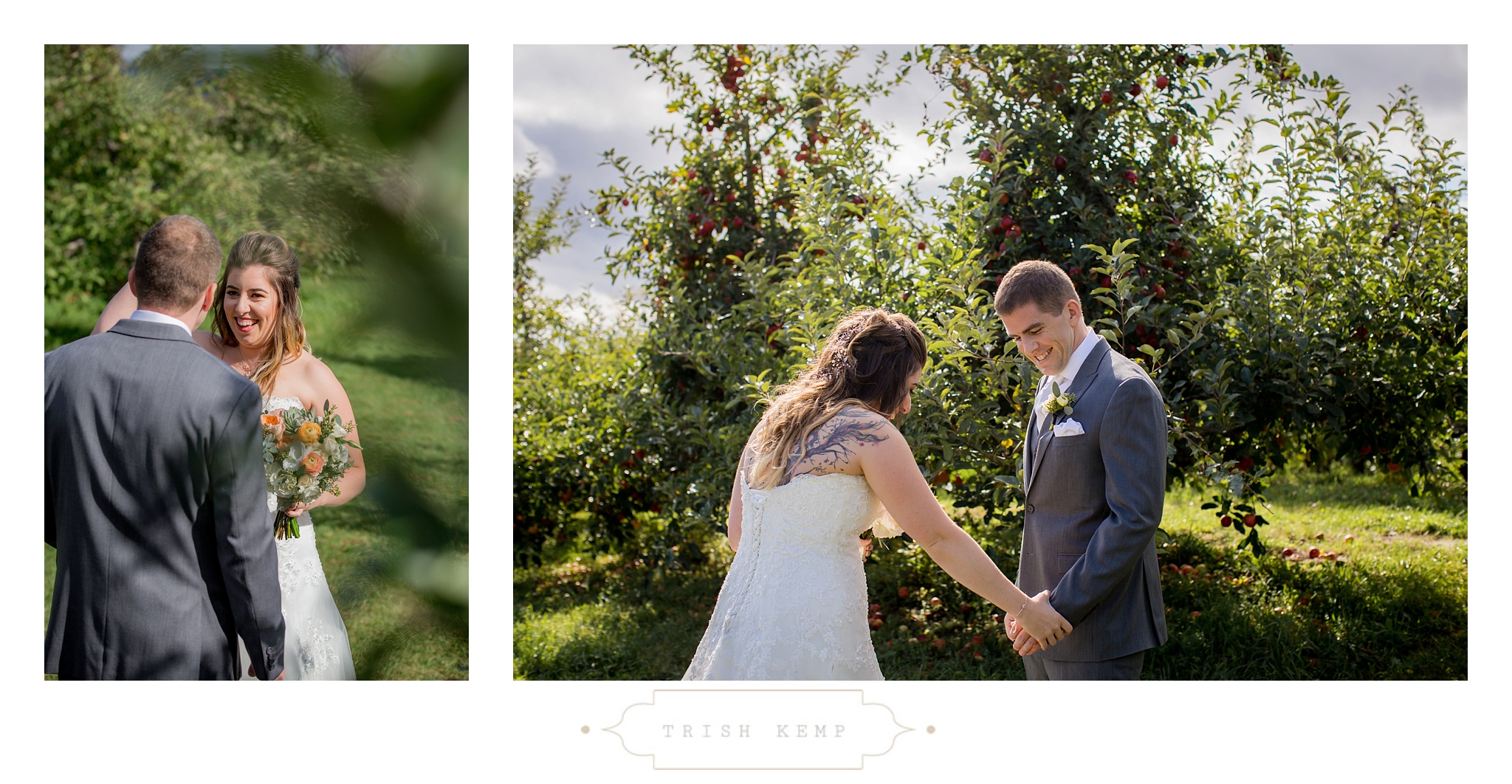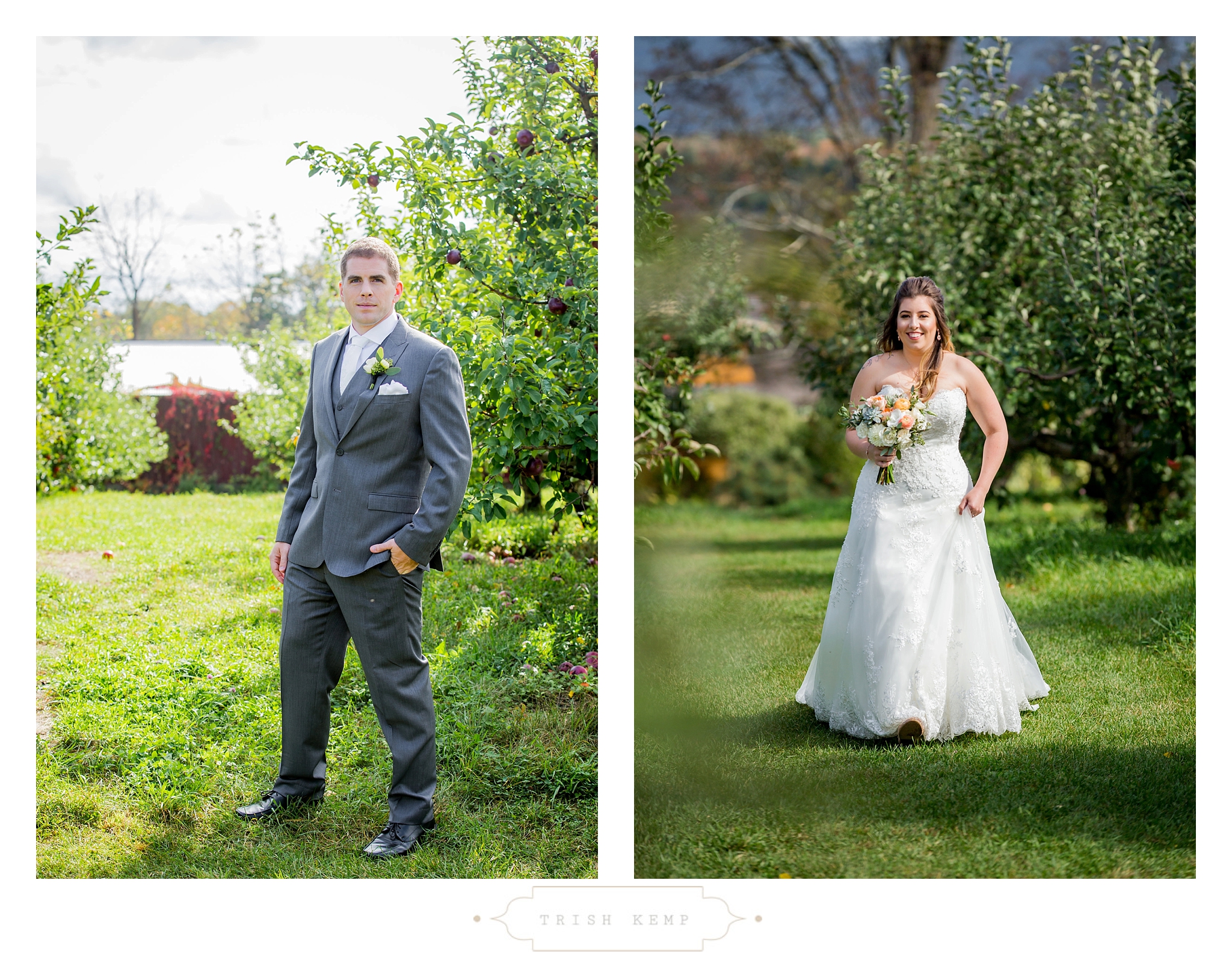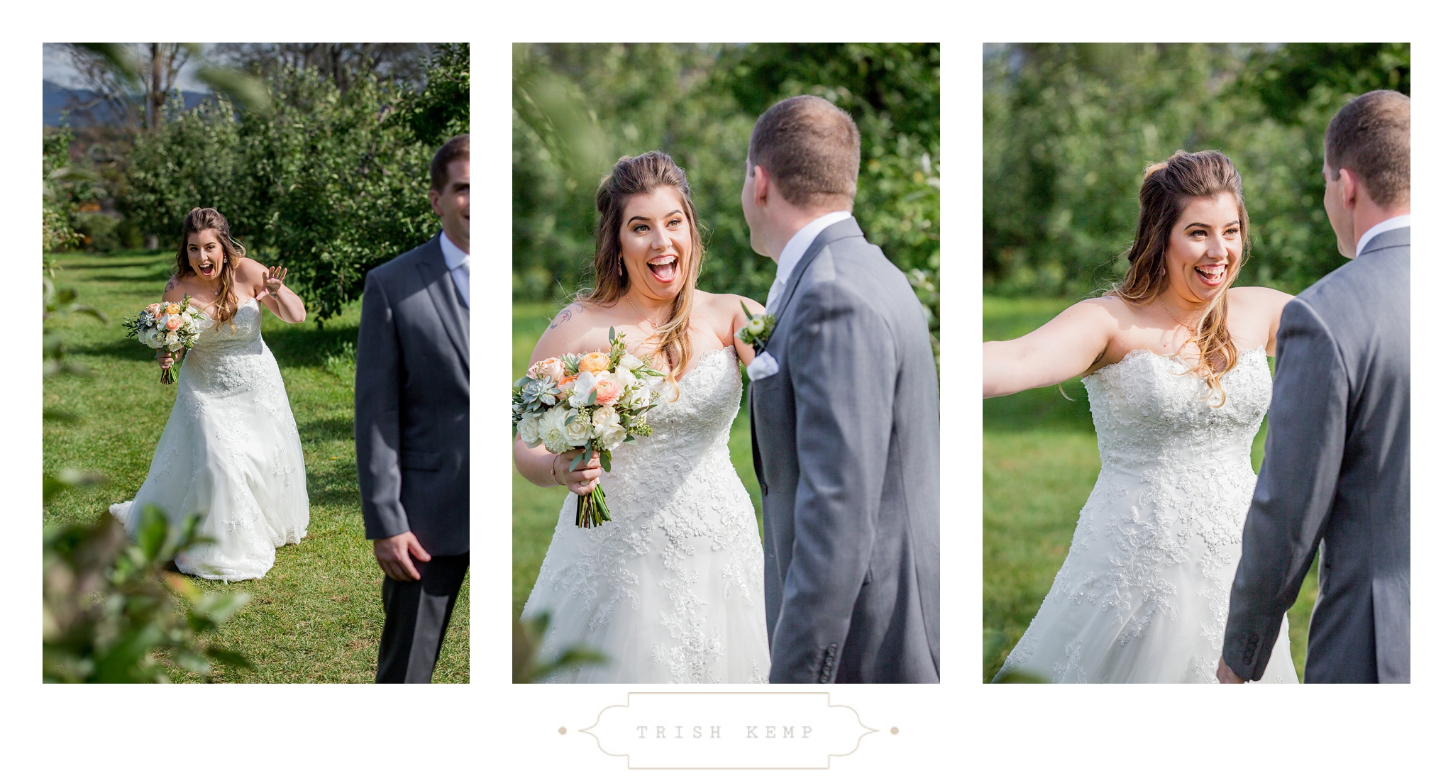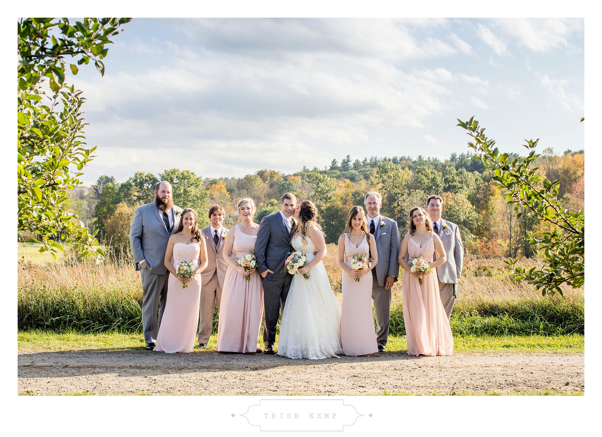 Their ceremony was held in the orchard under the fruitful apple trees. a light breeze which moved the bridesmaids dresses gently in the wind, provided the perfect touch of whimsical to this lighthearted ceremony. When the ceremony ended, these guys greeted their bridal party as they came back down the isle with ‘good game’ style high fives, that made for great photos of everyone celebrating the newlyweds.