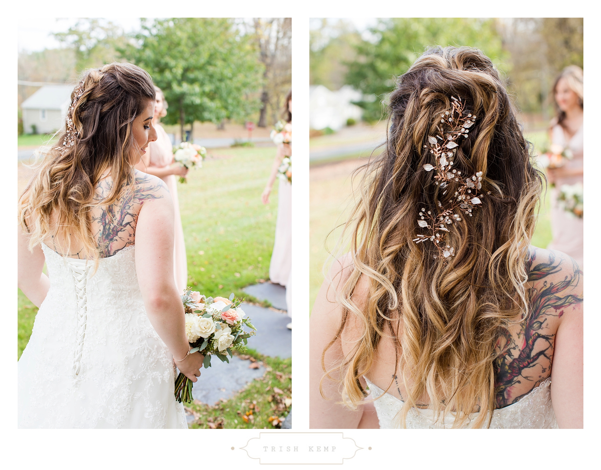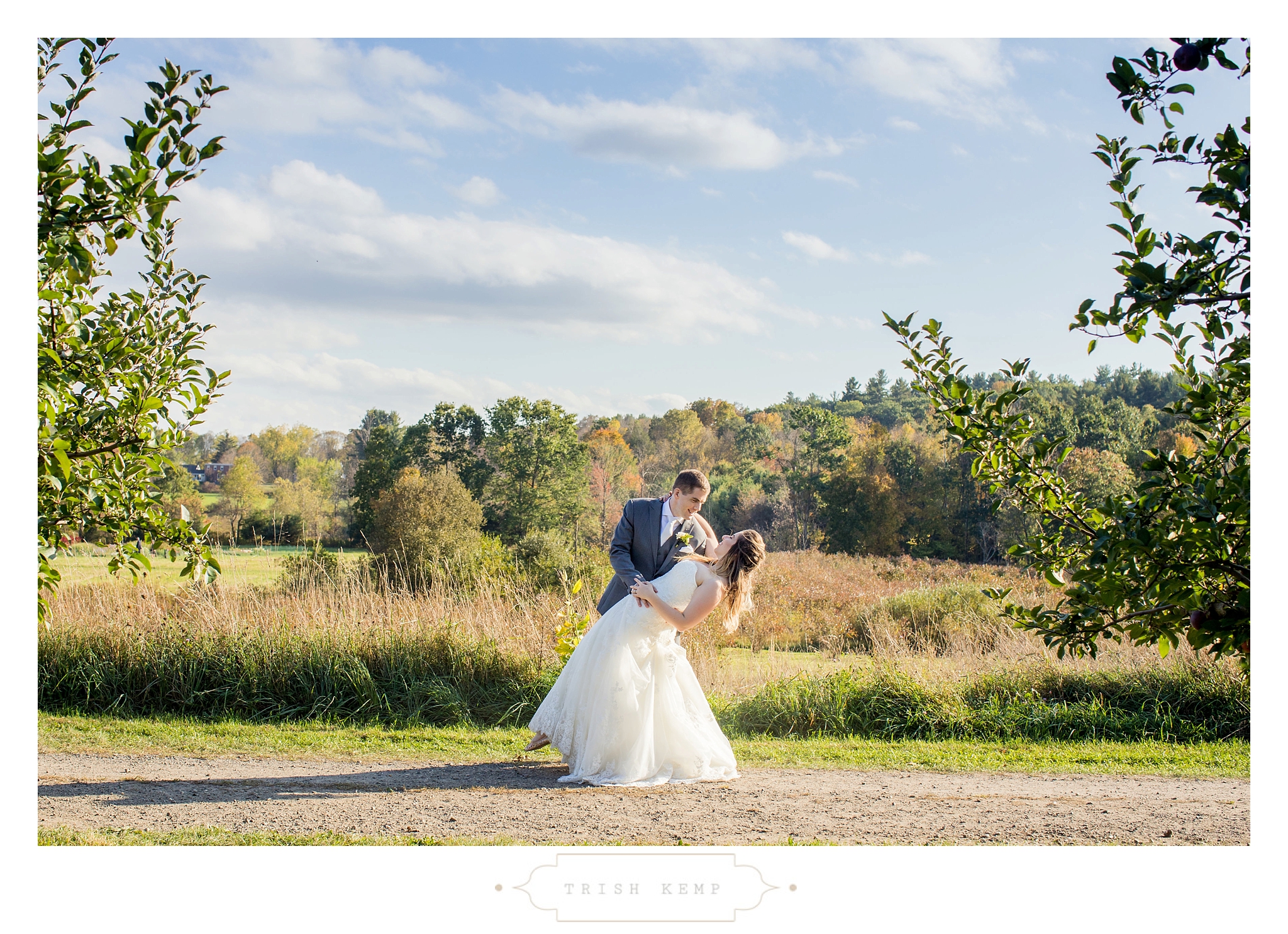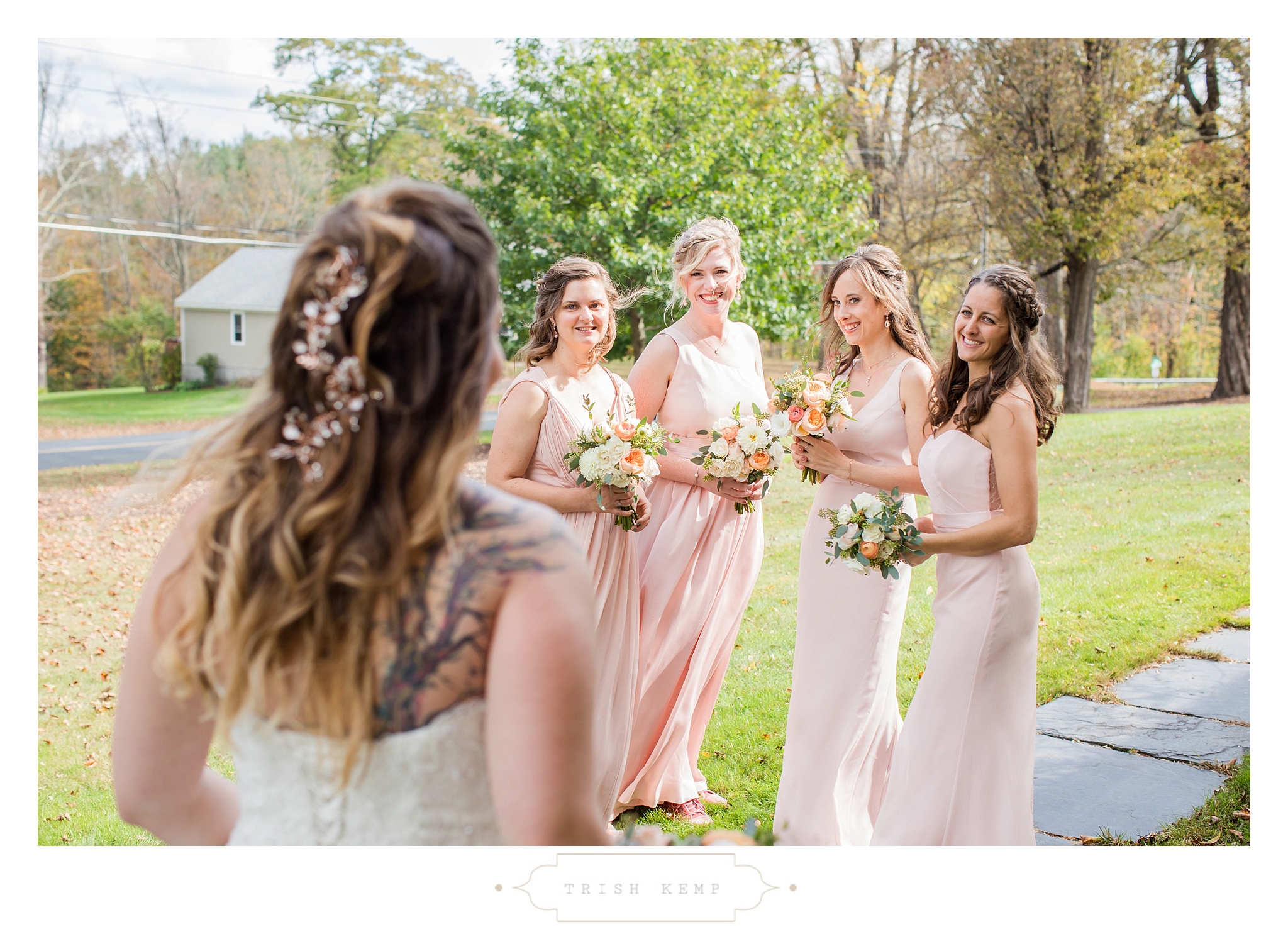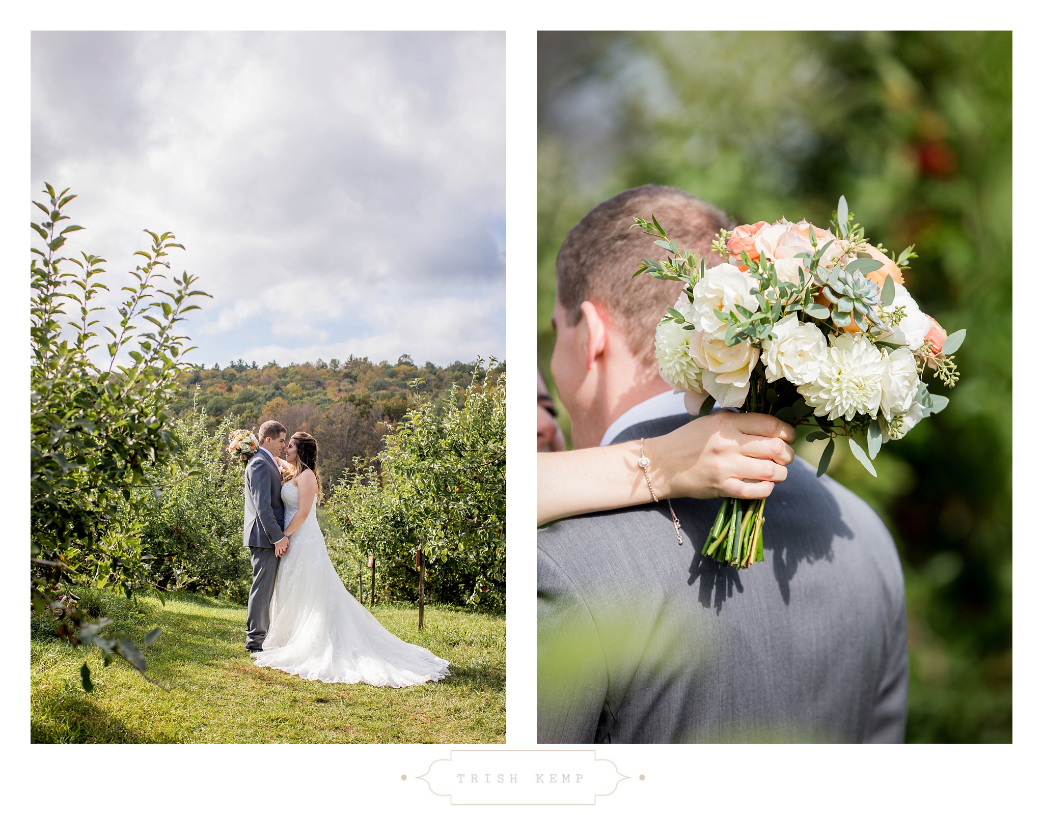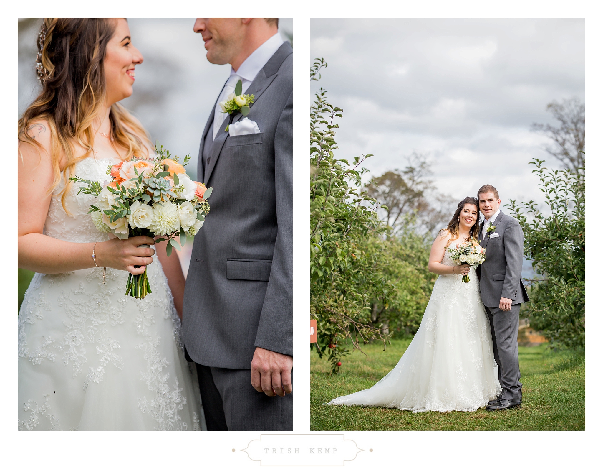 Their ceremony was held in the orchard under the fruitful apple trees. a light breeze which moved the bridesmaids dresses gently in the wind, provided the perfect touch of whimsical to this lighthearted ceremony. When the ceremony ended, these guys greeted their bridal party as they came back down the isle with ‘good game’ style high fives, that made for great photos of everyone celebrating the newlyweds.