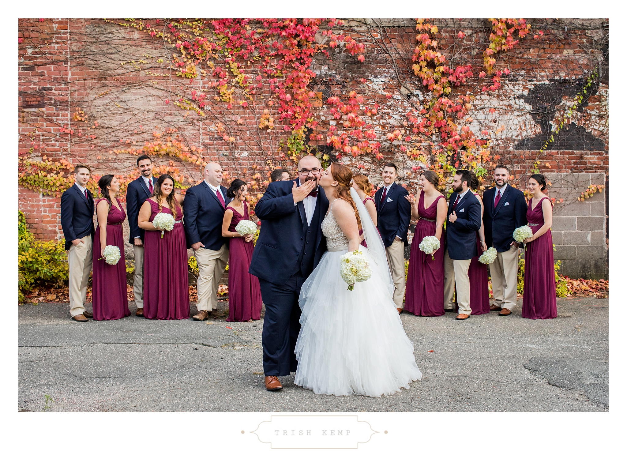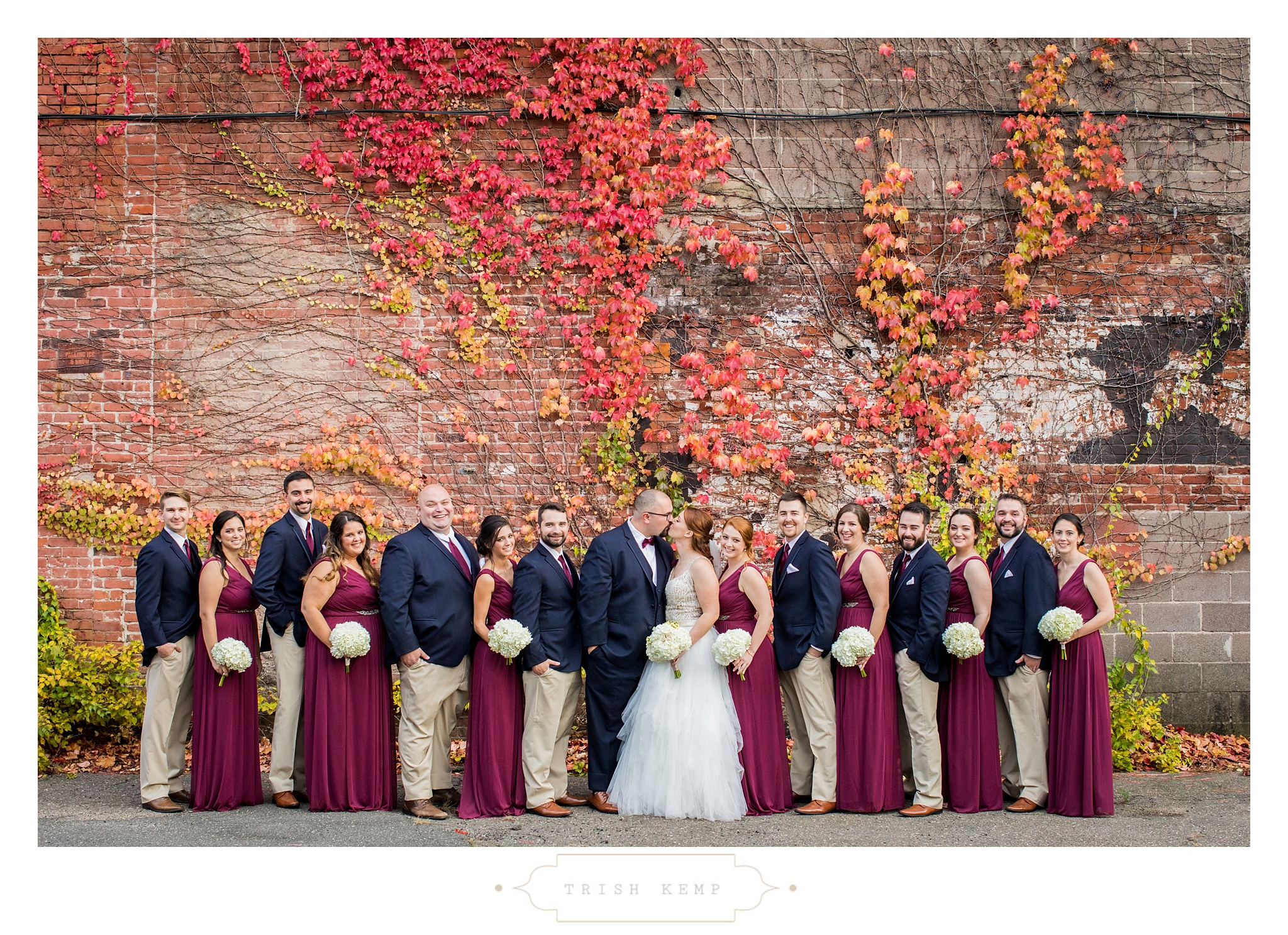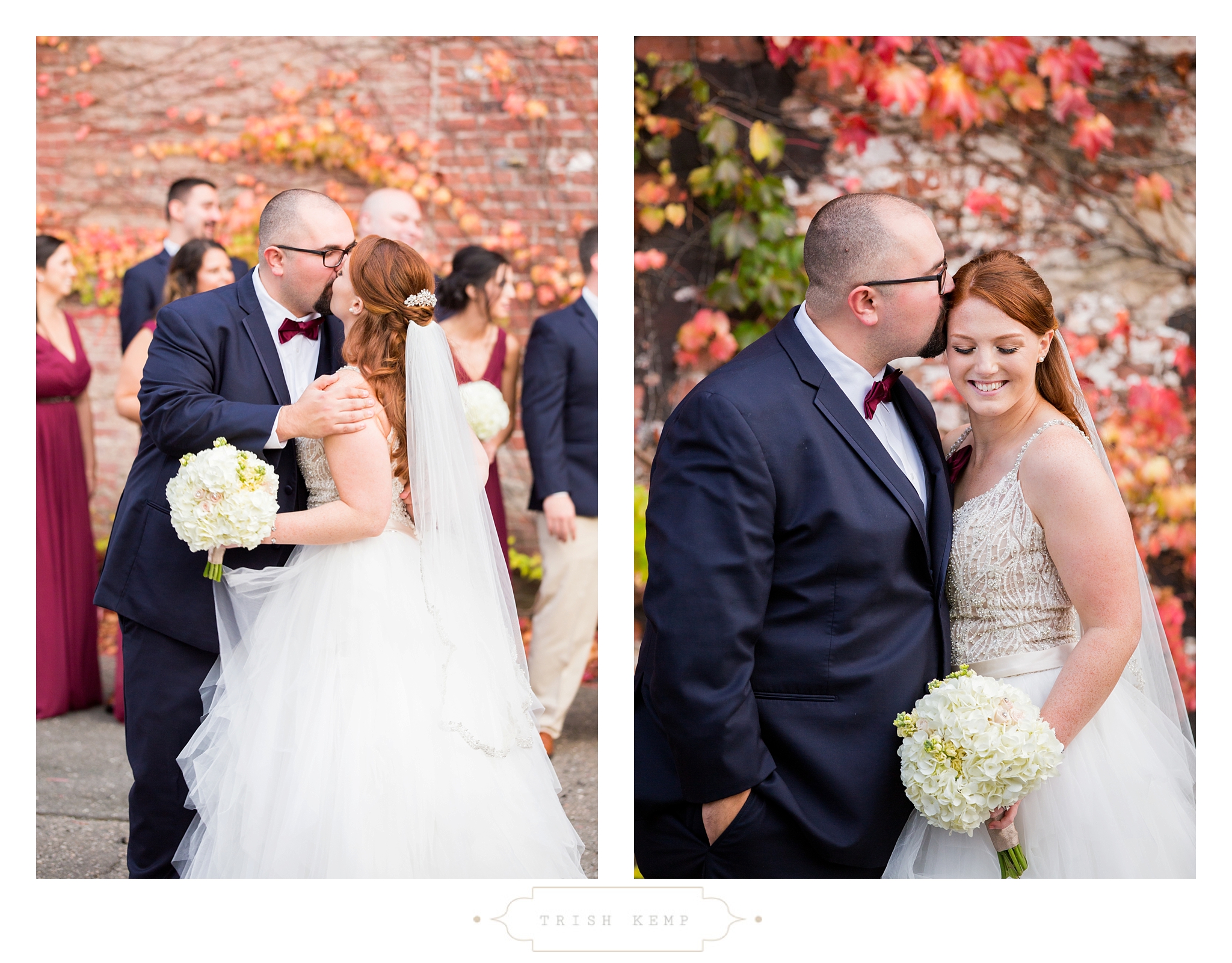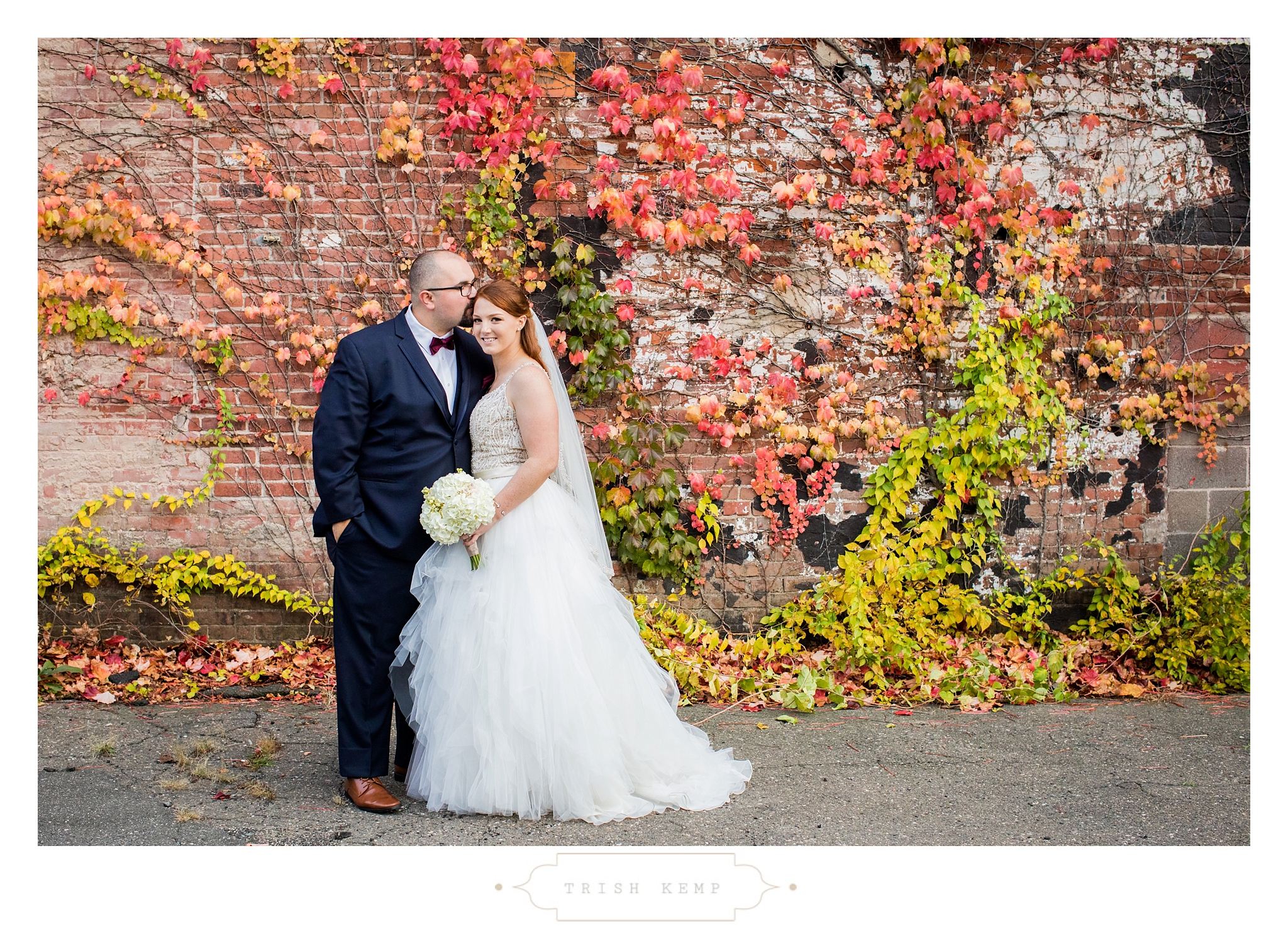 Fast forward to their wedding day and these two made me feel like I was part of their family. We had so many laughs, and amazing late fall foliage, they ended up with a collection that I know they will cherish forever. Maria wanted to have vines on the bricks so badly. I went back throughout the month leading up and was fearful that I wouldn’t be able to get her any foliage – and then I found it – and it was PERFECT! The colors on the wall brought so much energy to their collection, and it narrated the same kind of fun love that these two have for one another.